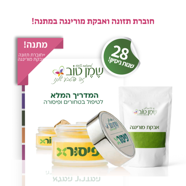 פיסורX + אבקת מורינגה איכותית + חוברת תזונה + ליווי אישי בטלפון ובוואטסאפ.